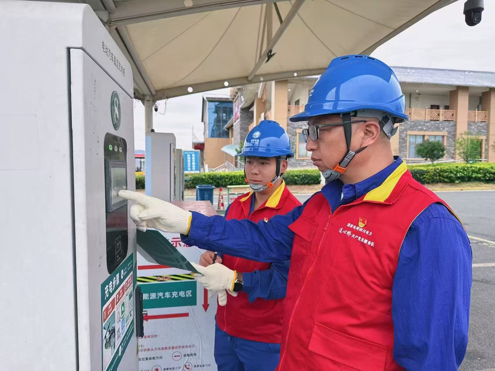 2月20日,国网四川电动汽车服务有限公司员工在西昌服务区充电站巡查充电设施运行情况。(诸立 摄)