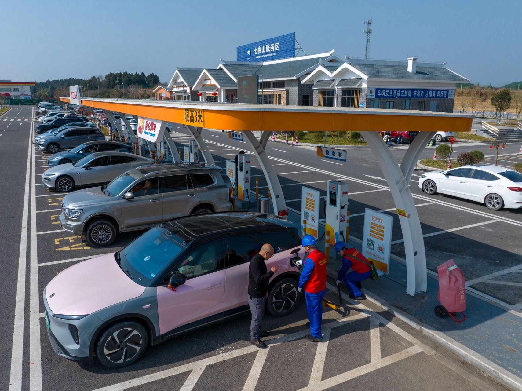 在运维保障方面,快速应急抢修机制高效运转。工作人员采取“一站一人”值守模式,在全省重点服务区现场引导车辆有序停靠、规范充电,及时协助车主解决操作问题,提升充电桩使用“翻台率”,减少车辆滞留时间,实现故障快速响应与处置。